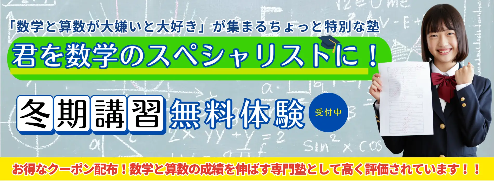 1名募集 数学は個人・個別指導クラスがあります |