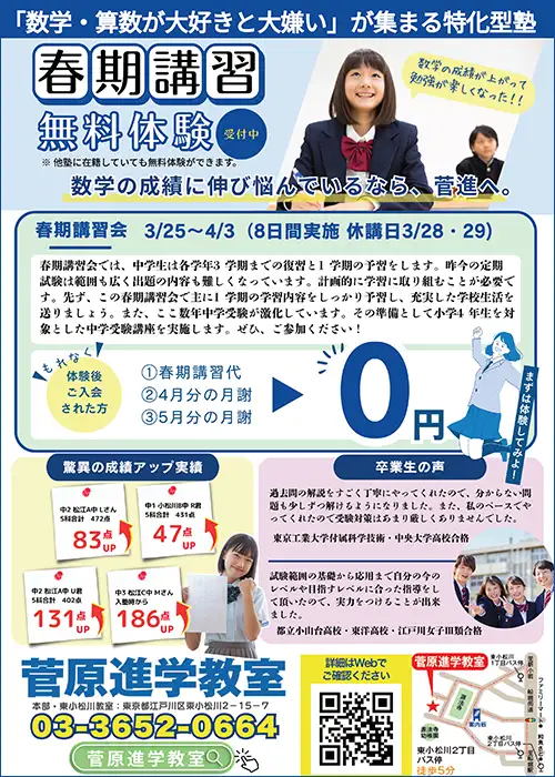 | 新中学2年生 数学と英語は単科でも受講可能 |