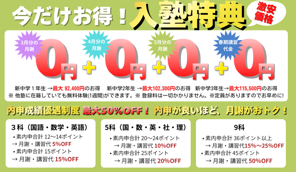 春期講習会のクーポンはこちら